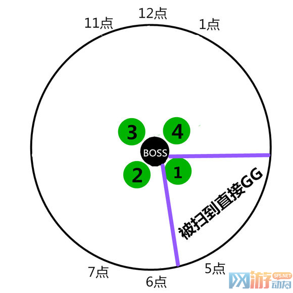 BOSS扫屏时候,是先从最远的开始喷毒,从远到近扫屏过去,(注意了,站贝壳上面的好处就是当BOSS扫到你这边时你可以往边SS躲掉)。重点是,扫完了你的位置后你要回到你原来的站位点,如果没扫到你的位置时你跑到别人站位点你就会害死人。如图: