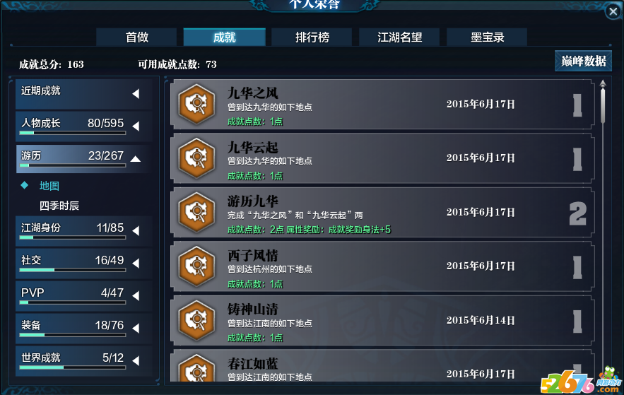 其间每一个地图的成果里都会有一个游历成果,只要游历成果完结,才能够得到特点点,而一个游历成果大多数需求两个别的成果完结才能够,而有的地图是三个,比方游历九华