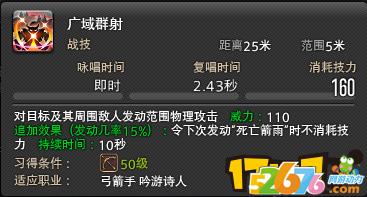 这三个技能为诗人的AOE技能,很多人认为就威力而言,这三个是一样的,但是广域群摄和死亡箭雨的TP消耗反而比这个多。在我看来,这两个技能是用来节省技力的,因为他有个15%的几率让下个技能0消耗,也就是说起手广域群射,在6下以内激活0消耗的特效之后就可以停手转用连珠箭输出,你都是赚的,第七下激活0消耗为不亏不赚,绝大多数情况3到5下能激活。如果第7下还没打出0消耗的话,只能自认脸黑=。=